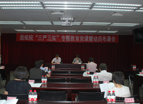 ? ??根據(jù)國資委黨委和集團(tuán)公司黨委關(guān)于開展“三嚴(yán)三實(shí)”專題教育的部署和要求,6月9日下午,造紙?jiān)狐h委舉辦“三嚴(yán)三實(shí)”專題教育黨課暨動員部署會,造紙?jiān)狐h委書記孫波講專題黨課,造紙?jiān)狐h委副書記、紀(jì)委書記劉波主持會議并部署“三嚴(yán)三實(shí)”專題教育實(shí)施方案。造紙?jiān)侯I(lǐng)導(dǎo)班子成員、各部門負(fù)責(zé)人、支部書記及所屬單位領(lǐng)導(dǎo)班子成員參加了學(xué)習(xí)。