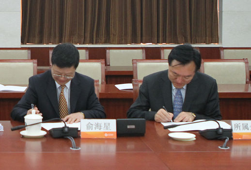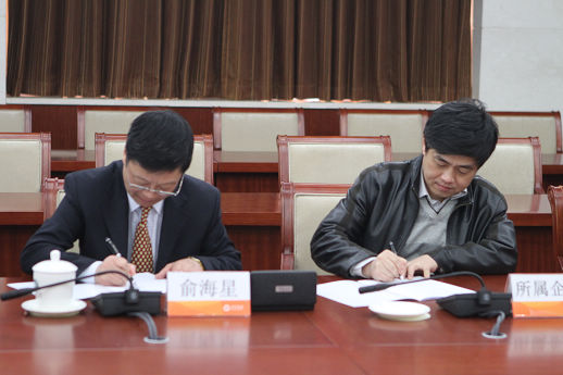 集團(tuán)公司總經(jīng)理俞海星與日化院院長王萬緒簽訂任務(wù)合同書