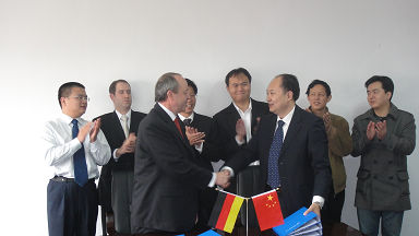 經(jīng)過數(shù)輪緊張談判,2009年11月18日,集團公司所屬長沙長泰公司與德國徠斯機器人公司就工業(yè)機器人領(lǐng)域進行業(yè)務(wù)合作簽定了合資合同。集團公司副總經(jīng)理、長泰公司董事長馬思一先生與德國徠斯機器人公司代表、亞太區(qū)總裁Manfred Emont先生代表雙方分別在合資合同書上簽字。