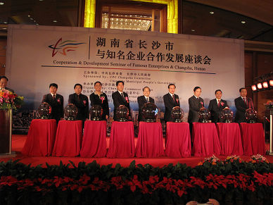 全國人大常委會原副委員長蔣正華在會上發(fā)表了講話。他認(rèn)為長沙在克服金融危機(jī)影響、實(shí)現(xiàn)又好又快發(fā)展上取得了令人稱道的成績,希望有實(shí)力的企業(yè)多到長沙看看,加強(qiáng)與長沙的交流合作,實(shí)現(xiàn)互利雙贏。中共湖南省委常委、長沙市委書記陳潤兒在會上介紹了長沙的發(fā)展成就和投資優(yōu)勢,表達(dá)了加強(qiáng)長沙與知名企業(yè)合作,實(shí)現(xiàn)互利共贏的良好愿望。會議由長沙市委副書記、市長張劍飛主持。